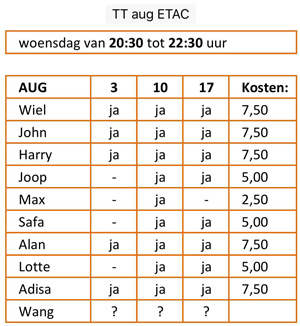 Op woensdagavond 25 mei is er overleg ten aanzien van de teamindeling voor de najaarscompetitie NTTB en ABTF.